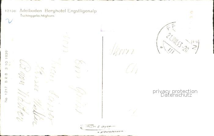 12029590 alte Postkarte Adelboden Frutigen BE Berghotel Engstligenalp Tschingelochtighorn Berner Alpen postalisch gelaufen Erhaltung siehe scans KatCode: 11470060170196