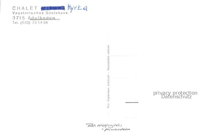 34144538 Adelboden Frutigen BE Chalet Myrta postalisch nicht gelaufen Erhaltung siehe scans [FriedD77] KatCode: 11470060170196
