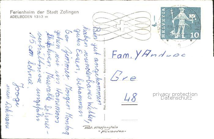 12057022 alte Postkarte Adelboden Frutigen BE Ferienheim der Stadt Zofingen postalisch gelaufen Erhaltung siehe scans KatCode: 11470060170196