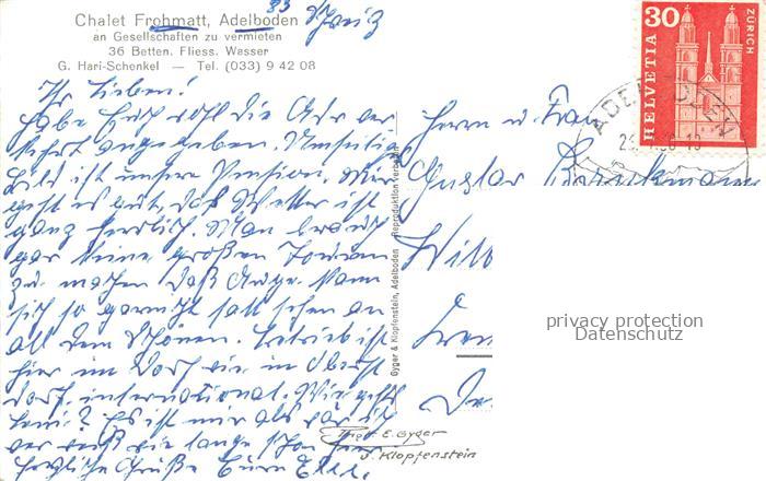 34144614 alte Postkarte Adelboden Frutigen BE Hotel Frohmatt postalisch gelaufen Erhaltung siehe scans [FriedD77] KatCode: 11470060170196