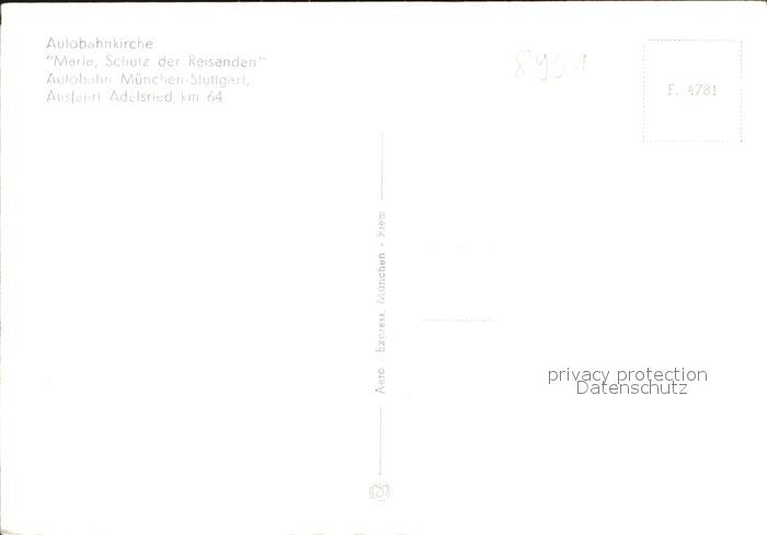 72421208 Adelsried Augsburg Autobahnkirche postalisch nicht gelaufen Erhaltung siehe scans KatCode: 11110009772111