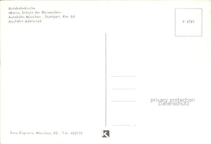 72126214 Adelsried Autobahnkirche Maria Schutz der Reisenden postalisch nicht gelaufen Erhaltung siehe scans KatCode: 11110009772111