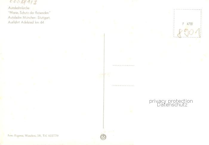 73868337 Adelsried Autobahnkirche Maria Schutz der Reisenden postalisch nicht gelaufen Erhaltung siehe scans [WerneD78] KatCode: 11110009772111