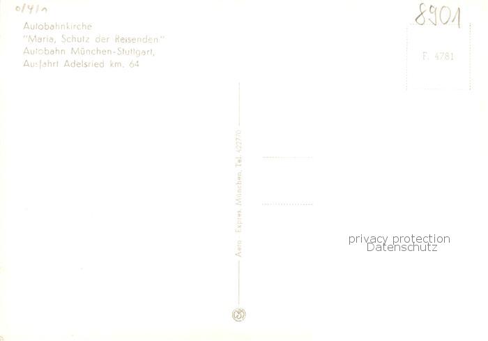 73868336 Adelsried Autobahnkirche Maria Schutz der Reisenden postalisch nicht gelaufen Erhaltung siehe scans [WerneD78] KatCode: 11110009772111