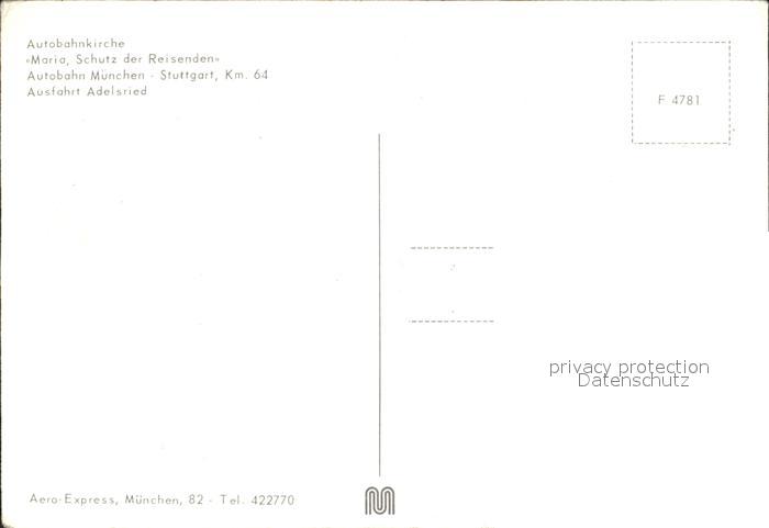 72071664 Adelsried Autobahnkirche Maria Schutz der Reisenden A8 Muenchen Stuttgart postalisch nicht gelaufen Erhaltung siehe scans KatCode: 11110009772111