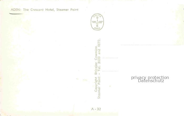 74132578 ADEN Jemen The Crescent Hotel Steamer Point postalisch nicht gelaufen Erhaltung siehe scans [FriedD77] KatCode: 13090