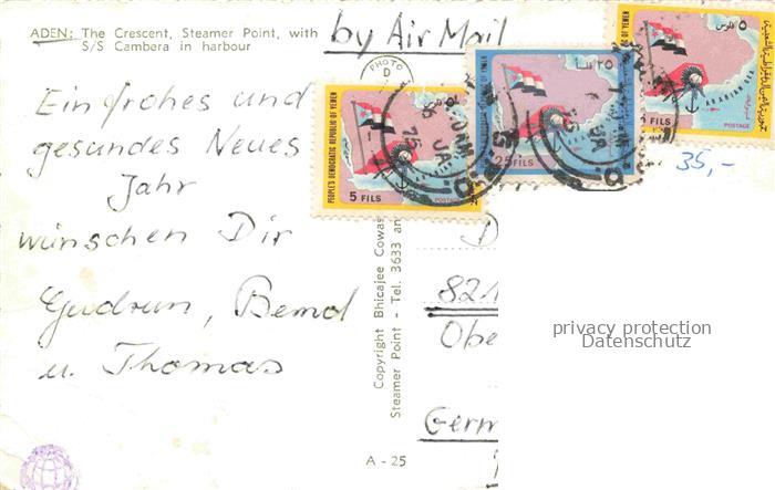 74022834 old postcard ADEN Jemen The Crescent Steamer Point with S/S Cambera in harbour postalisch gelaufen Erhaltung siehe scans [FriedD77] KatCode: 13090
