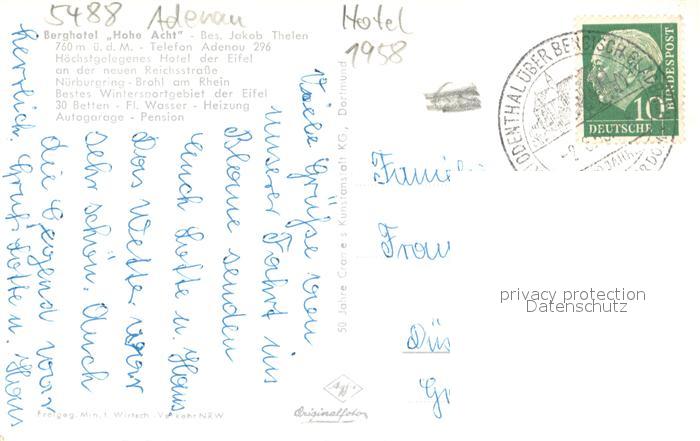 73696127 alte Postkarte Adenau Ahrweiler Rheinland-Pfalz Berghotel Hohe Acht postalisch gelaufen Fliegeraufnahme Erhaltung siehe scans [WerneD78] KatCode: 11110007131001