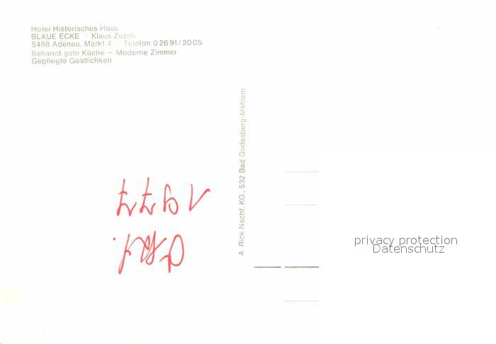72866778 Adenau Ahrweiler Rheinland-Pfalz Hotel Blaue Ecke Fachwerk postalisch nicht gelaufen Erhaltung siehe scans [LiesaD40] KatCode: 11110007131001