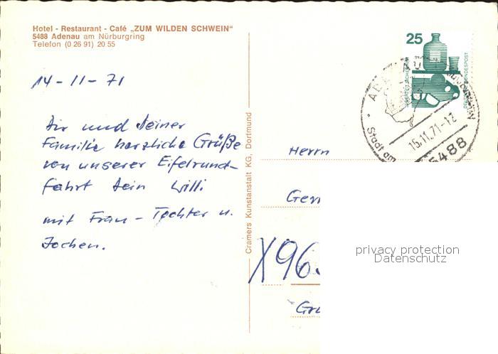 72455089 alte Postkarte Adenau Ahrweiler Rheinland-Pfalz Hotel Restaurant Cafe Zum Wilden Schwein postalisch gelaufen Erhaltung siehe scans KatCode: 11110007131001