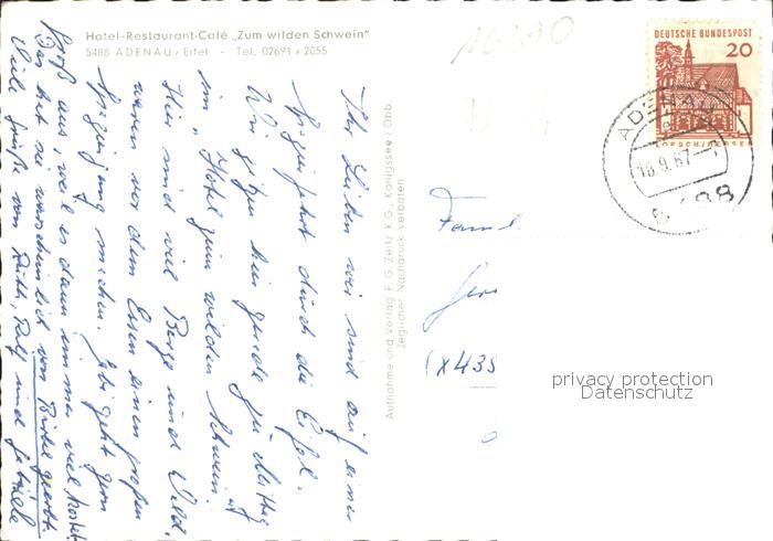 72180046 alte Postkarte Adenau Ahrweiler Rheinland-Pfalz Hotel zum wilden Schwein Nuerburgring Hohe Acht postalisch gelaufen Erhaltung siehe scans KatCode: 11110007131001