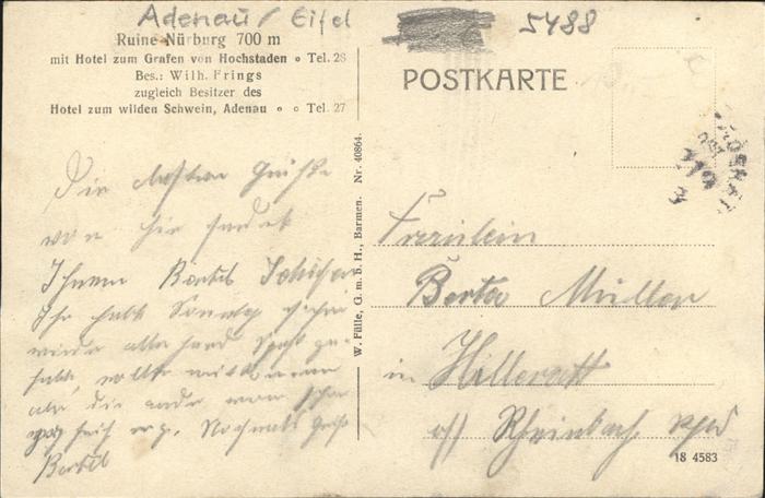 41326856 Adenau Ahrweiler Rheinland-Pfalz Ruine Nuernberg mit Hotel Grafen von Hochstaden postalisch gelaufen gute Erhaltung Alte Ansichtskarte Postkarte alte Postkarte hz_F Katcode 11110007131001