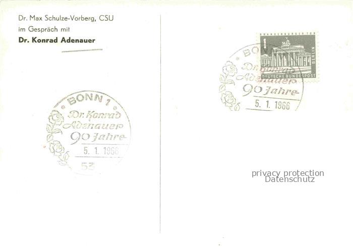 74105416 alte Postkarte ADENAUER Konrad (1876-1967) Politik Deutschland CDU Dr. Max Schulze Vorberg postalisch gelaufen Erhaltung siehe scans [SanaeD93] KatCode: 11110011000000