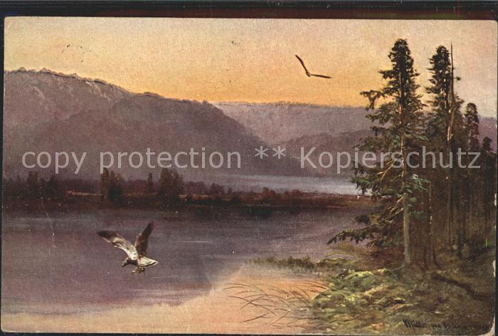 alte Postkarte Adler Eagle Aigle Aguila Berglandschaft Baeume Natur postalisch gelaufen Erhaltung siehe scans