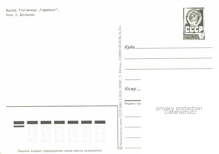 Adler Sotschi Hotel Horisont postalisch nicht gelaufen Ganzsache (eingedruckte Briefmarke) Erhaltung siehe scans [NatalD47]