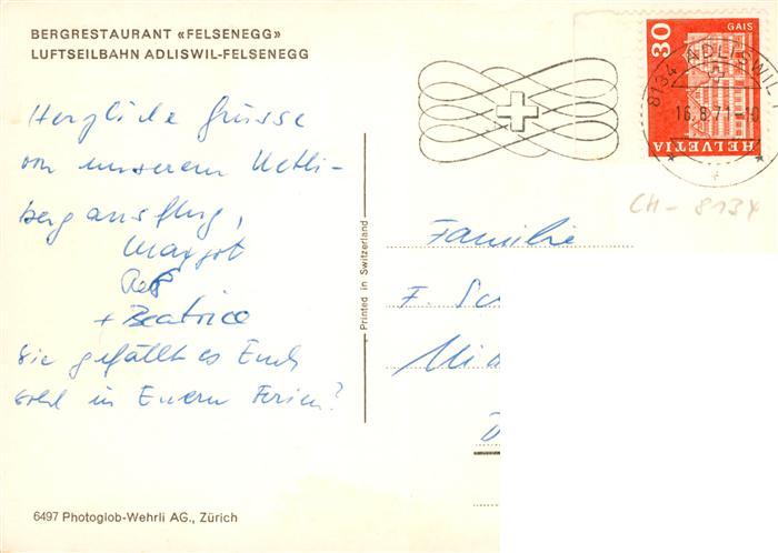 13895963 alte Postkarte Adliswil ZH Bergrestaurant Felsenegg Luftseilbahn Adliswil Felsenegg postalisch gelaufen Erhaltung siehe scans [WerneD78] KatCode: 11470260890318