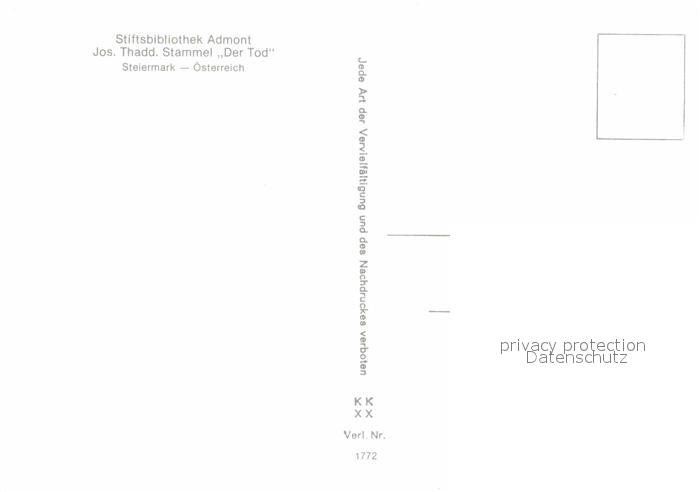 72851841 Admont Kaernten Stiftsbibliothek Der Tod postalisch nicht gelaufen Erhaltung siehe scans [AndreD76] KatCode: 11390213020817
