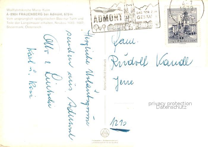 73162982 alte Postkarte Admont Steiermark Fliegeraufnahme Wallfahrtskirche Frauenberg postalisch gelaufen Erhaltung siehe scans [LiesaD40] KatCode: 11390222061201