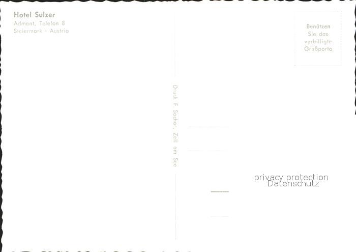 12298358 Admont Steiermark Hotel Sulzer postalisch nicht gelaufen Erhaltung siehe scans KatCode: 11390222061201