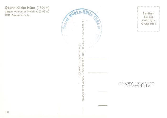 73169789 Admont Steiermark Oberst Klinke Huette postalisch nicht gelaufen Erhaltung siehe scans [KathaD81] KatCode: 11390222061201
