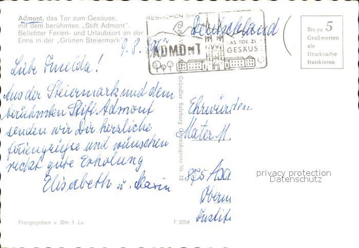 72487976 alte Postkarte Admont Steiermark Stift Admont Buchstein Hochtorgruppe Fliegeraufnahme postalisch gelaufen Erhaltung siehe scans KatCode: 11390222061201