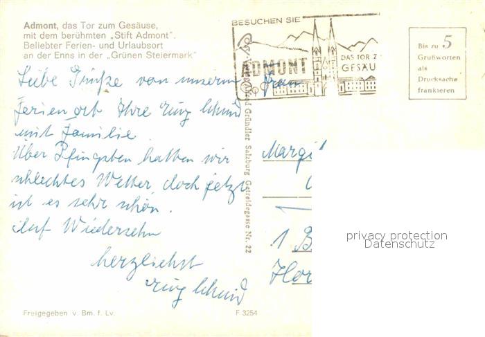 72916016 alte Postkarte Admont Steiermark Stift Buchstein Gesaeuse-Eingang Hochtorgruppe postalisch gelaufen Erhaltung siehe scans [NatalD47] KatCode: 11390222061201