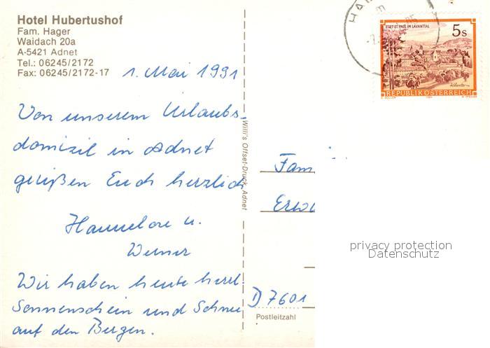13237391 alte Postkarte Adnet Hotel Hubertushof Swimming Pool postalisch gelaufen Erhaltung siehe scans [FriedD77] KatCode: 11390323050202