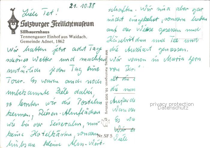 72598791 Adnet Salzburger Freilichtmuseum Sillbauernhaus postalisch nicht gelaufen Erhaltung siehe scans [LiesaD40] KatCode: 11390323050202