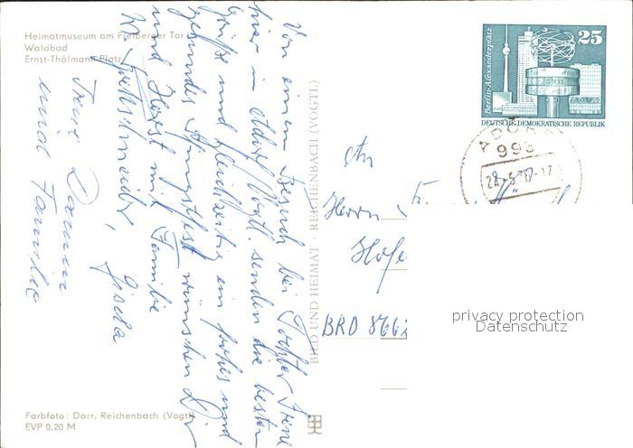 72279808 alte Postkarte Adorf Vogtland Heimatmuseum Freiberger Tor Waldbad Ernst Thaelmann Platz postalisch gelaufen Erhaltung siehe scans KatCode: 11110014178010