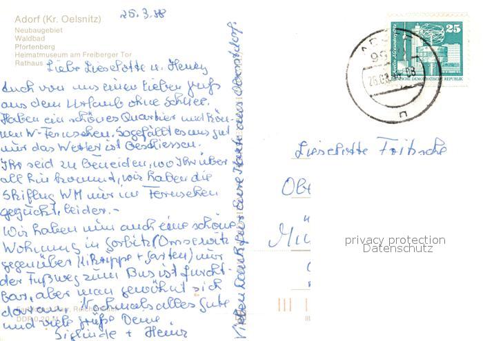 73310770 alte Postkarte Adorf Vogtland Neubaugebiet Waldbad Pfortenberg Heimatmuseum Freiberger Tor Rathaus postalisch gelaufen Erhaltung siehe scans [FriedD77] KatCode: 11110014178010