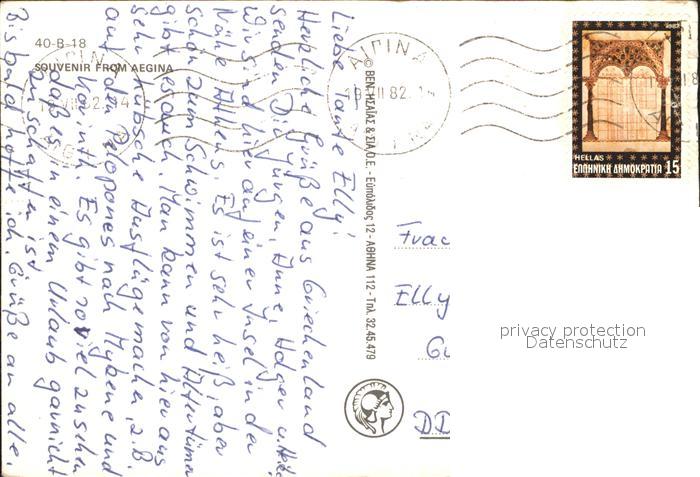 old postcard Aegina Egina Boot Hafen Ruine Strand postalisch gelaufen Erhaltung siehe scans