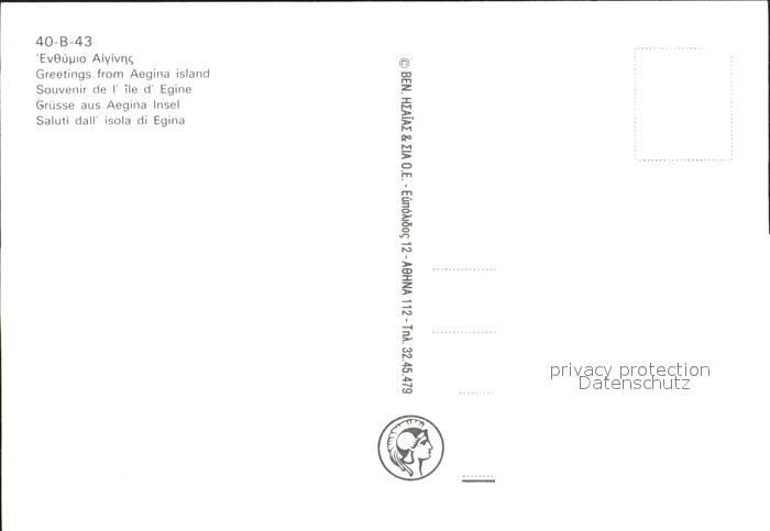 Aegina Egina Hafenpartie Tempelruine Fischerboote postalisch nicht gelaufen Erhaltung siehe scans
