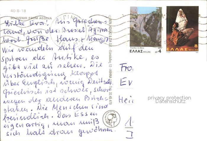 old postcard Aegina Egina Tempel Ruine Antike Fischerboot Strand postalisch gelaufen Erhaltung siehe scans