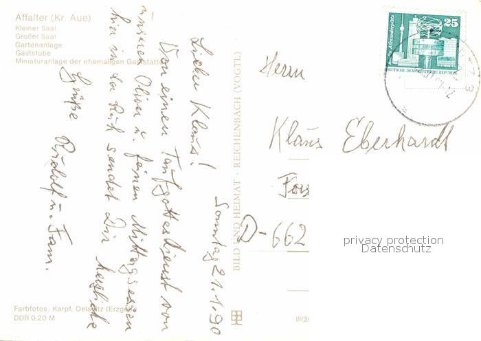 72882039 alte Postkarte Affalter Berggaststaette Neu Friedrichsruh Saal Gartenanlage postalisch gelaufen Erhaltung siehe scans [FriedD77] KatCode: 11110014191220