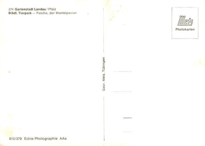 73942057 Affen Gartenstadt Landau Pfalz Staedt. Tierpark Pascha postalisch nicht gelaufen Erhaltung siehe scans [IrynaD87] KatCode: 22540000002900