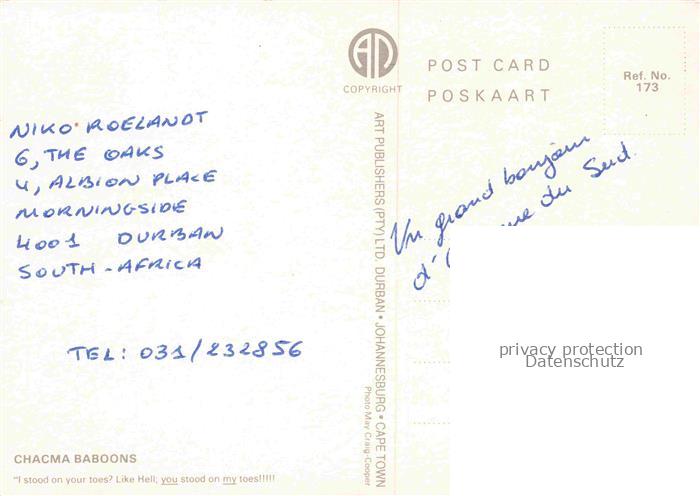 74031202 Affen Monkeys Singes Monos Scimmie– Chacma Baboons Bushveld postalisch nicht gelaufen Erhaltung siehe scans [IrynaD87] Iryn Katcode 22540000002900