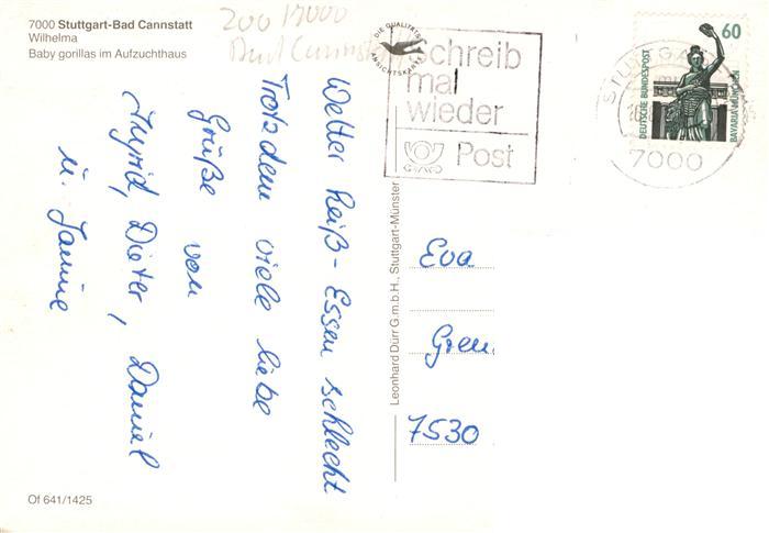 73940496 alte Postkarte Affen Stuttgart Bad Cannstatt Baby Gorillas postalisch gelaufen Erhaltung siehe scans [IrynaD87] KatCode: 22540000002900