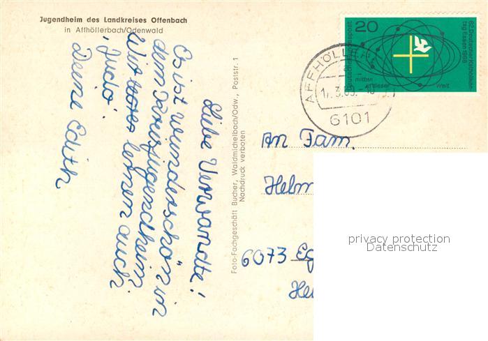 73175056 alte Postkarte Affhoellerbach Jugendheim des Landkreises Offenbach im Odenwald postalisch gelaufen Erhaltung siehe scans [FriedD77] KatCode: 11110006437003