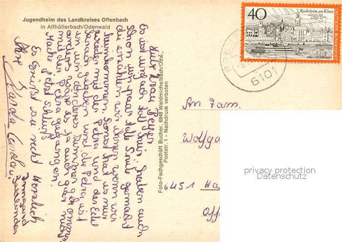 73056272 alte Postkarte Affhoellerbach Jugendheim des LK Offenbach postalisch gelaufen Erhaltung siehe scans [WerneD78] KatCode: 11110006437003
