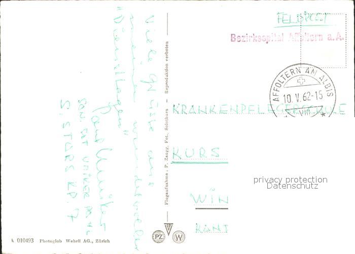 11641356 alte Postkarte Affoltern Albis Bezirksspital Fliegeraufnahme postalisch gelaufen Feldpost Erhaltung siehe scans KatCode: 11470260860040