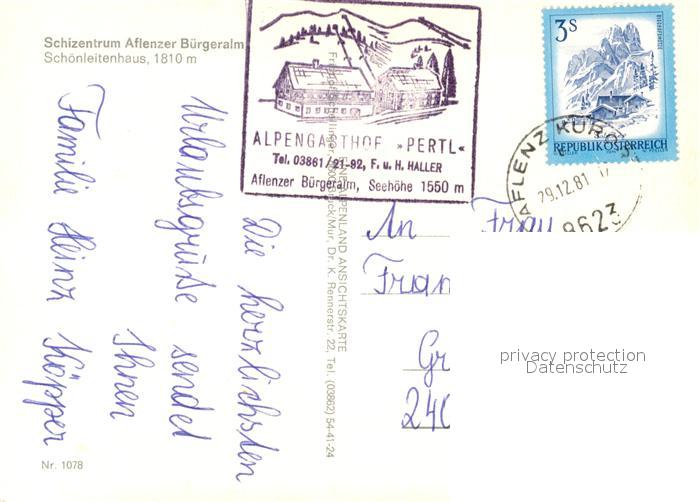 73265658 alte Postkarte Aflenz Buergeralm Schoenleitenhaus Winter postalisch gelaufen Erhaltung siehe scans [KathaD81] KatCode: 11390223060201