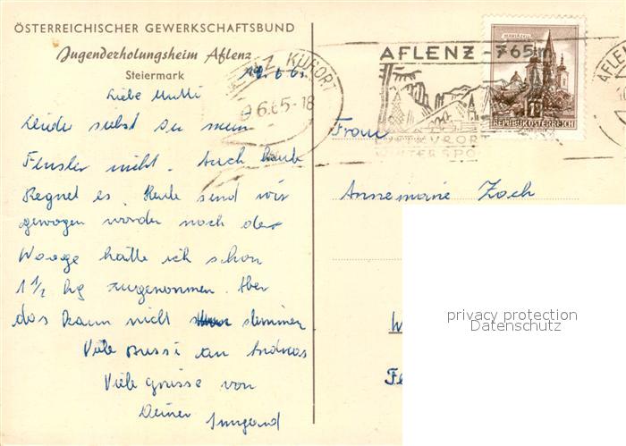 73231773 alte Postkarte Aflenz Jugenderholungsheim postalisch gelaufen Erhaltung siehe scans [LiesaD40] KatCode: 11390223060201