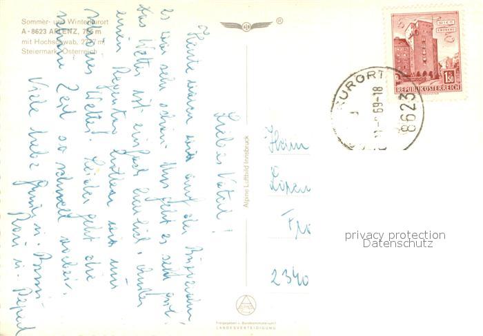 73645316 alte Postkarte Aflenz Kurort mit Hochschwab Alpenpanorama Fliegeraufnahme postalisch gelaufen Erhaltung siehe scans [FriedD77] KatCode: 11390223060201