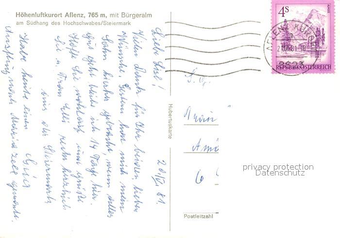 73049727 alte Postkarte Aflenz mit Buergeralm postalisch gelaufen Erhaltung siehe scans [WerneD78] KatCode: 11390223060201
