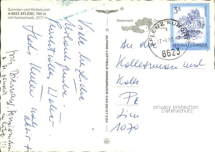 72210656 alte Postkarte Aflenz Steiermark mit Hochschwab Fliegeraufnahme postalisch gelaufen Erhaltung siehe scans KatCode: 11390223060201