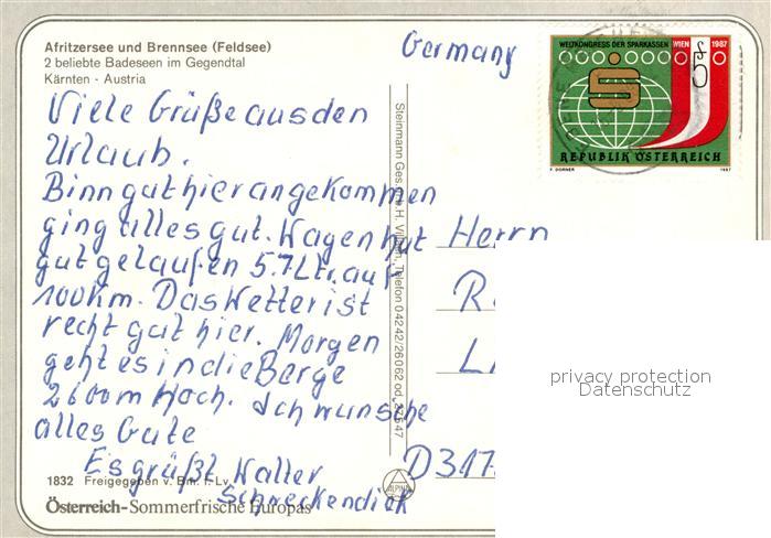 73162250 alte Postkarte Afritz See Afritzersee Brennsee Badeseen im Gegendtal Fliegeraufnahme postalisch gelaufen Erhaltung siehe scans [FriedD77] KatCode: 11390211020701