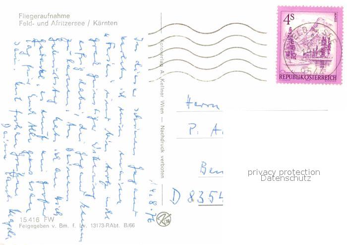 72678809 alte Postkarte Afritz See Fliegeraufnahme mit Feldsee postalisch gelaufen Erhaltung siehe scans [LiesaD40] KatCode: 11390211020701