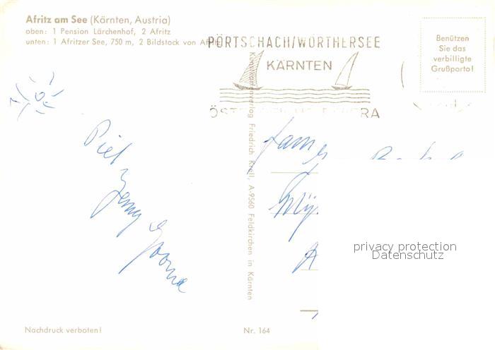 72862715 alte Postkarte Afritz See Pension Laerchenhof Panorama See Bildstock postalisch gelaufen Erhaltung siehe scans [WerneD78] KatCode: 11390211020701