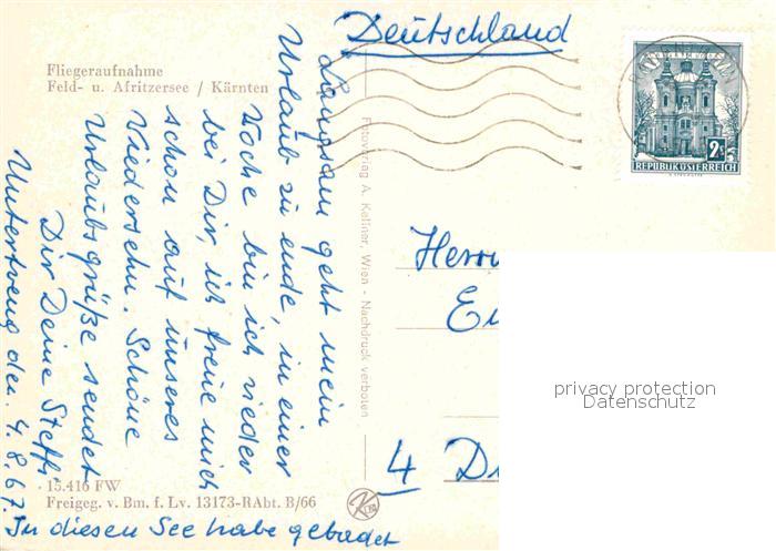 72633185 alte Postkarte Afritz See und Feldsee Fliegeraufnahme postalisch gelaufen Erhaltung siehe scans [FriedD77] KatCode: 11390211020701