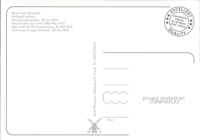 Afsluitdijk Monument postalisch nicht gelaufen Erhaltung siehe scans